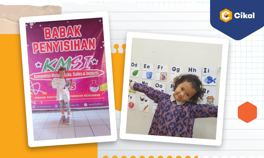 Adzra dalam proses ekplorasi minatnya di Matematika, Sains, dan Bahasa Inggris yang masih dini bahkan telah membuktikan kemandiriannya dan meraih 3 penghargaan sebagai refleksi kegigihannya. Apa yang sebenarnya membuat Adzra selalu antusias belajar dan meneksplorasi minatnya? Simak ceritanya di bawah ini! Adzra menceritakan bahwa ia senang sekali membaca dan menyimak berbagai buku bacaan berkaitan dengan Sains dalam Bahasa Inggris dalam keseharian belajarnya di Sekolah Cikal Bandung dan di rumah. “Aku suka belajar karena aku suka membaca buku Sains dalam bahasa Inggris. Aku juga suka Sains karena aku ingin belajar tentang tubuhku.” ucapnya. Lisa, Ibunda dari Adzra, mengungkapkan bahwa Adzra pada awalnya tidak memiliki ketertarikan terhadap Matematika, Sains, dan Bahasa Inggris. Namun, karena ia seringkali melihat kakak-kakaknya berani untuk mencoba tantangan melalui kompetisi. “Pada awalnya Adzra tidak terlihat ketertarikan minat pada matematika, sains, maupun bahasa inggris, Adzra terpengaruh oleh kakak-kakaknya Adzra yang pernah menang di beberapa kejuaraan. Berawal dari hal tersebut membuat Adzra memiliki motivasi agar mendapatkan pengalaman yang sama seperti kakaknya.” ujarnya. Adzra pun mencoba mengikuti kompetisi yang didorong oleh keinginan dapat memiliki keberanian dan pengembangan diri seperti sang Kakak. “Aku ikut kompetisi karena aku mau belajar, aku mau ikut kompetisi karena aku suka belajar dan aku ingin mendapatkan prestasi seperti kakak-kakakku.” ungkap Adzra. Dalam pengalamannya, ia pun bisa meraih prestasi dalam dorongan serta motivasinya antara lain, KMSI 2025 (kompetisi Matematika, Sains, dan Inggris) yang terakurasi puspresnas (Pusat Prestasi Nasional) Juara 1 Bahasa Inggris Level TK babak penyisihan kota Bandung (medali Emas) Olimpiade Omni Sains Indonesia yang terakurasi puspresnas (Pusat Prestasi Nasional) Medali Perunggu mata pelajaran Berhitung tingkat TK penyisihan kota Bandung. Medali Perak mata pelajaran Bahasa Inggris tingkat TK penyisihan kota Bandung. Baca Juga : SD Cikal Bandung Beri Tantangan Anak Belajar Jadi Konten Kreator Bijak Bersekolah di TK Cikal Bandung, Adzra menceritakan bahwa di Sekolah Cikal Bandung ia selalu nyaman untuk belajar bersama para guru yang ramah. Tak hanya itu, ia juga mengungkapkan bahwa ia menyukai program Cikal Aksi-Aksi yang mendorongnya mempelajari lebih dalam mengenai tanaman sebagai bagian dari makhluk hidup di manusia. “Aku senang sekolah di TK Cikal Bandung karena guru-gurunya baik. Aku senang belajar mengenai tanaman seperti bagaimana tanaman itu ditanam dan bagaimana cara mengurus dan mengelola tanaman di Cikal Aksi-Aksi.” ujarnya. Bagi Lisa, Ibunda Adzra, pengembangan diri Adzra menjadi pemikir terlatih dan efektif untuk menjadi manusia yang mandiri dan bertanggung jawab akan proses belajarnya di setiap tahap dan tantangan di Sekolah Cikal Bandung. “Ketika awal masuk saya ingin Adzra tumbuh menjadi self-regulated learner, karena ketika awal masuk Adzra masih cukup sering tantrum. Adzra sekarang sudah bisa lebih fokus dan kuantitas tantrumnya sudah berkurang. Namun, Saya melihat Adzra sudah mulai masuk ke dalam kompetensi skillful and effective thinker karena terlihat Adzra sudah muncul rasa tanggung jawabnya. Adzra sudah bisa membuat keputusannya sendiri dan bertanggung jawab atas keputusan yang diambilnya sendiri seperti perlombaan yang diikuti oleh Adzra.” ceritanya. Di akhir, sebagai orang tua, Lisa hanya berharap Adzra dapat tumbuh dan berkembang di TK Sekolah Cikal Bandung dengan segala tantangan yang ia pilih untuk menjadi pribadi yang berkembang seutuhnya di kehidupan sebagai individu yang bertanggung jawab dan mandiri. “Harapan terbesar saya bagi Adzra adalah ia selalu bisa menjadi diri Adzra sendiri yang seutuhnya dan bisa menyampaikan apa yang diinginkannya, bertanggung jawab, dan mandiri (seutuhnya).” imbuhnya. (*) Baca Juga : Mengenal Program Agama dan Cara Belajarnya di TK dan SD Cikal Bandung Tanyakan informasi mengenai pendaftaran, program hingga kurikulum Cikal melalui Whatsapp berikut : https://bit.ly/cikalcs Artikel ini ditulis dan dipublikasikan oleh Tim Digital Cikal Narasumber : Adzra, Murid TK Cikal Bandung Ibu Lisa, Orang Tua Adzra Cikal Bandung Editor : Layla Ali Umar Penulis : Salsabila FitrianaSuka Belajar dan Terinspirasi Sang Kakak
