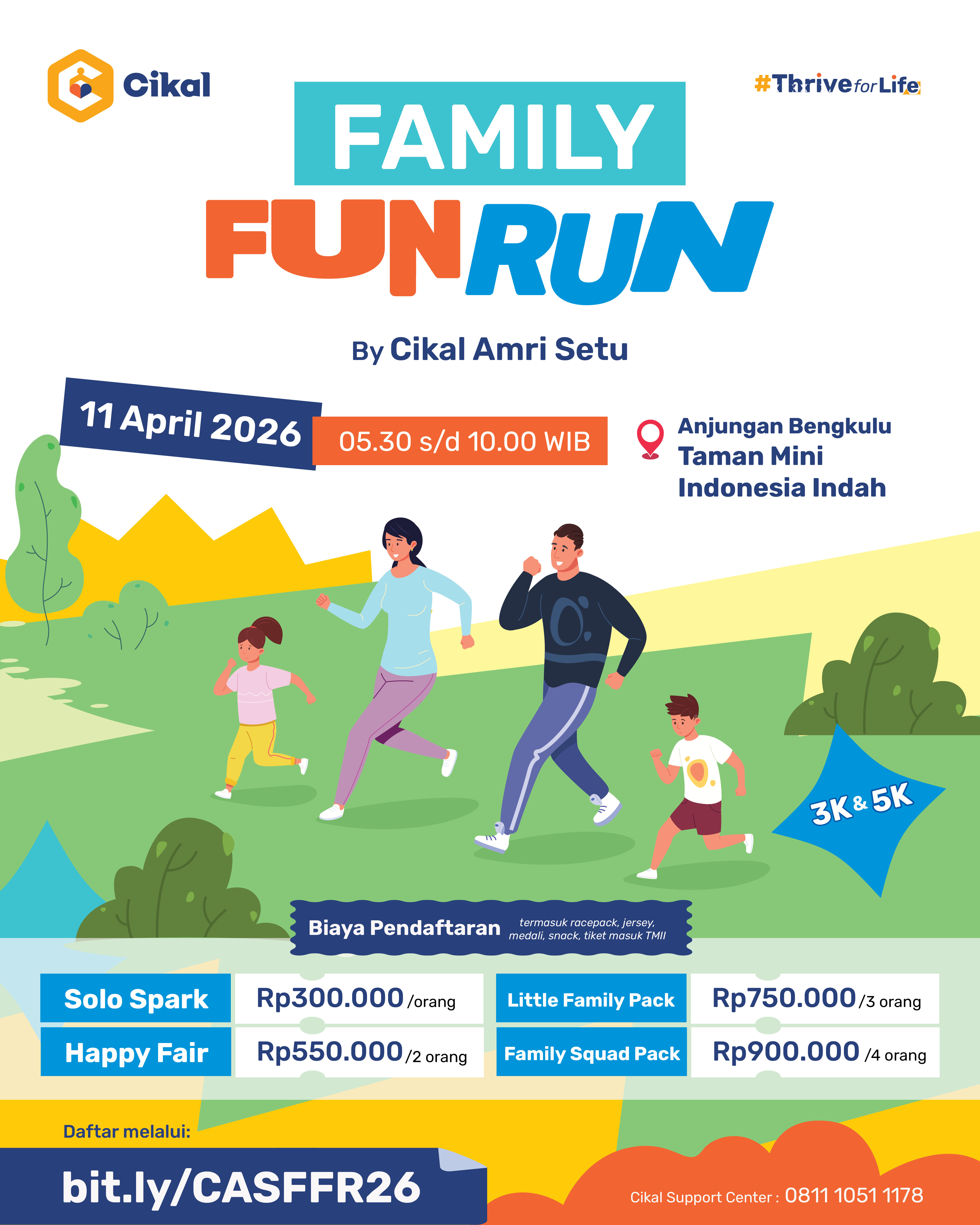 Tertarik untuk jadi bagian dari Family Fun Run Sekolah Cikal Amri Setu pada 11 April 2026 mendatang. Dapatkan informasinya lebih lanjut melalui akun Instagram @sekolahcikal.(*)