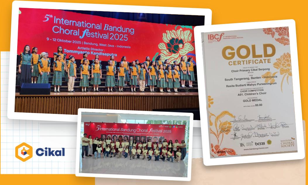 Jakarta, Sekolah Cikal Serpong. Tim Paduan Suara (Choir) SD Cikal Serpong meraih medali emas pertamanya di kompetisi International Bandung Choral Festival (IBCF) 2025 pada 9-12 Oktober 2025 yang berlangsung di Auditorium PPAG Universitas Katolik Parahyangan, Bandung.